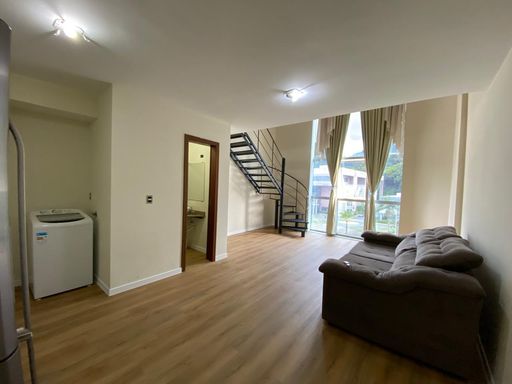 FLAT em área central! ✔️60m² de área privativa ✔️Banheira de hidromassagem ✔️Ficam os móveis das fotos ✔️Aparelho de ar condicionado ✔️Pé direito duplo na sala ✔️Residencial c/ elevador