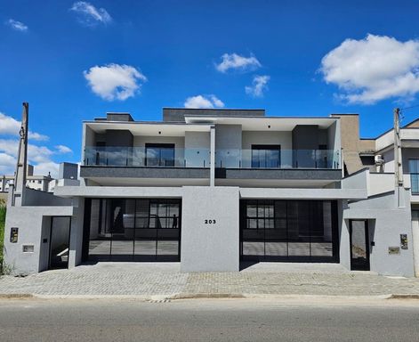 SOBRADO GEMINADO DE ALTO PADRÃO COM 1 SUÍTE + 02 QUARTOS, AMPLA ÁREA PRIVATIVA E EXCELENTE LOCALIZAÇÃO! 📍 LOTEAMENTO MONTREAL - TRÊS RIOS DO NORTE - Jaraguá do Sul/SC. - Características: ✔️ 193,29 m² de área construída; ✔️ Excelente padrão de acabamento: - Rebaixo em gesso em todos os ambientes; - Soleiras em mármore; - Massa corrida nas paredes; - Portas brancas laqueadas; - Piso vinílico nos dormitórios; - Piso porcelanato nos demais ambientes; - Esquadrias em alumínio preto; - Corrimão em aço inoxidável; - Janelas ampliadas proporcionando maior iluminação natural e ventilação; - Nicho nos banheiros; - Esperas para ar condicionado em todos os ambientes; - Sacada na suíte; - Brita nos fundos do imóvel; ✔️ 01 suíte com sacada + 02 dormitórios + 01 banheiro social + 01 lavabo; ✔️ 02 Vagas de garagem cobertas; ✔️ Sala e cozinha em living (integrados); ✔️ Área Gourmet com churrasqueira; ✔️ Área de serviço isolada com revestimento e janela externa; ✔️ Excelente localização à 5 minutos do centro da cidade - Bairro desenvolvido e com infraestrutura completa - Comércio, Escolas e Unidades Básicas de Saúde; ✔️ Móveis planejados à negociar; ✔️ Amplo espaço para ampliação. Aceita financiamento bancário; Aceitamos veículo como parte do pagamento; Aceitamos o seu imóvel como entrada. Venha marcar uma visita ou fazer uma simulação sem compromisso!