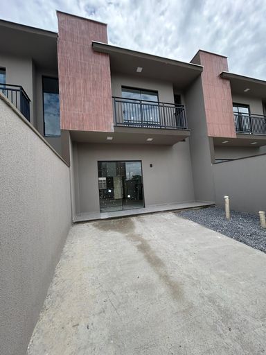 CASA GEMINADA NA PLANTA COM ENTRADA PARCELADA, SUÍTE + 02 QUARTOS E EXCELENTE PADRÃO DE ACABAMENTO! 📍 LOTEAMENTO SANTA CLARA I - BANANAL DO SUL - GUARAMIRIM/SC. - Características: ✔️ 90,85 m² privativos; ✔️ Excelente padrão de acabamento: - Rebaixo em gesso em todos os ambientes; - Soleiras em mármore; - Massa corrida nas paredes; - Portas brancas semi-laqueadas; - Piso porcelanato em todos os ambientes; - Nicho nos banheiros; - Esperas para ar condicionado em todos os ambientes; - Paver na garagem; - Brita nos fundos do imóvel; - Iluminação em Led; - Portão basculante; - Entrada social; - Jardim com gramado no entorno do imóvel; - Janelas ampliadas - proporciona maior ventilação e iluminação natural; ✔️ 03 quartos, sendo 1 suíte + 01 banheiro social; ✔️ Sala e cozinha em Living (integrados); ✔️ 01 Vaga de garagem descoberta; ✔️ Área de serviço externa com revestimento; ✔️ Área gourmet com churrasqueira; ✔️ Excelente localização há 5 minutos do centro da cidade - Bairro com infraestrutura completa e comércio desenvolvido, escolas e unidades básicas de saúde; ✔️ Móveis planejados à negociar; ✔️ Amplo espaço para ampliação. - Previsão de entrega: Fevereiro/2026. Aceita financiamento bancário; Aceitamos veículo como parte do pagamento; Aceitamos o seu imóvel como entrada. Venha marcar uma visita ou fazer uma simulação sem compromisso! FOTOS ILUSTRATIVAS.