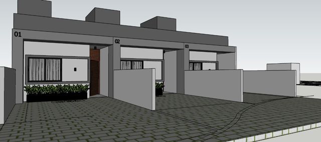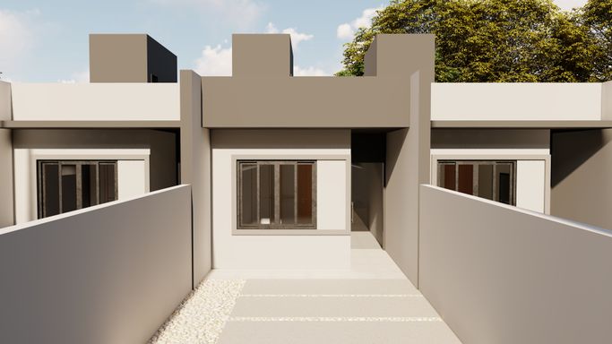 UNIDADES 1 à 3 Térreas: Área privativa: 55,58 m2; Área construída: 60,40 m2; Quintal dos fundos: 17,68 m2; Jardim e garagem frontal 46,73 m2. Vaga para 2 veículos (em gaveta). PISO TÉRREO: • Ambientes Integrados e amplos com Sala de Estar, Cozinha e Jantar pé direito alto; • 1 Banheiro social; • Área de Serviço e churrasqueira aberta com possibilidade de fechamento futuro; • Jardim e garagem frontal com canteiros e calçada em placas de concreto; • 2 dormitórios com 9,32m2 e 8,12m2; • Paredes livres, pensado para quem gosta de espaço e planejar seu ambiente; Acabamentos • Rebaixo em gesso quartos e cozinha, massa corrida em todos os ambientes internos; • Piso e rodapés cerâmicos retificado 70x70 no piso e nas paredes do banheiro até altura da laje superior, fosso com pintura acrílica para áreas úmidas (cozinha e área de serviço). • Cozinha e Área de serviço e churrasqueira com pintura acrílica para áreas úmidas; • Pedra granito cinza ocre itabira ou similar nas soleiras nas portas de entrada; • Pedra granito cinza ocre itabira nos peitoris das janelas; • Pintura texturizada na fachada, lisa nos paredões divisa, gelo lisa nas paredes e branca no teto dos ambientes internos e muros pintura lisa cinza claro; • Infraestrutura para Ar Condicionado Split em todos os Cômodos, 3 pontos sendo dois nos dormitórios e um no espaço de convivência; • luminosidade e diferencial com plafons instalados; • Quadro de Distribuição Elétrico com Disjuntores Separados e DR de Proteção; • Infraestrutura preparada pra futura instalação de placas de captação de energia solar; • Esquadrias blindex com perfil de alumínio na cor preta com vidros temperados; • Porta Principal maciça na madeira porta maciça batentes e vistas em no verniz, dobradiças inox, feche rolete, puxador de 60 cm barra chata cromado; • Porta quartos e banheiros cor branca UV + Fechadura + dobradiça rolamentada + borracha de Impacto; • Portão basculante com infra preparada para futura instalação do motor; • Cobertura em laje impermeabilizada manta aluminizada.