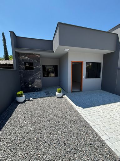 EXCELENTE PADRÃO DE ACABAMENTO, LOCALIZAÇÃO PRIVILEGIADA, SUÍTE + 01 D0RMITÓRIO E AMPLA ÁREA PRIVATIVA SÃO OS DIFERENCIAIS DESTE IMÓVEL! 📍 LOTEAMENTO ZERBIN - RIO HERN - Schroeder/SC. - Características: ✔️ 92,06 m² de área construída; ✔️ 02 quartos, sendo 01 suíte + 01 banheiro social; ✔️ Sala e cozinha em living (integrados); ✔️ 02 Vagas de garagem, sendo 01 coberta; ✔️ Excelente padrão de acabamento: - Rebaixo em em gesso em todos os ambientes; - Soleiras em mármore; - Massa corrida nas paredes; - Porta principal pivotante de madeira maciça; - Janela da fachada em pele de vidro; - Portas brancas semi-laqueadas; - Piso porcelanato em todos os ambientes; - Iluminação em LED; - Nicho nos banheiros; - Portão de alumínio de correr; - Brita na frente e nos fundos do imóvel; - Espera para ar-condicionado em todos os ambientes; - Janelas ampliadas - Proporciona maior ventilação e iluminação natural; - Arandelas de iluminação externa; - Esquadrias em alumínio preto - linha suprema; ✔️ Área de serviço externa com revestimento; ✔️ Churrasqueira integrada na cozinha; ✔️ Móveis planejados à negociar; ✔️ Amplo espaço para ampliação. - Pronto para morar. Aceita financiamento bancário; Aceitamos veículo como parte do pagamento; Aceitamos o seu imóvel como entrada. Venha marcar uma visita ou fazer uma simulação sem compromisso!