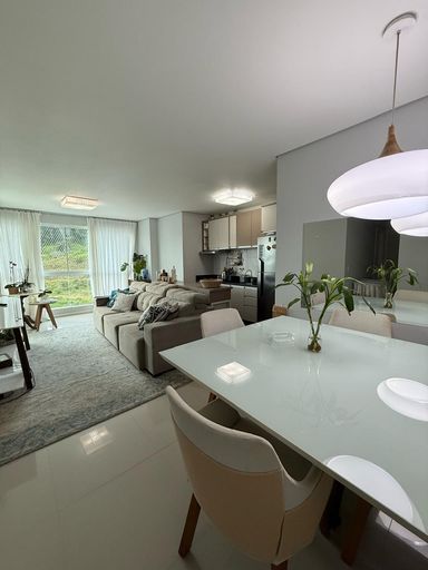 ✔️ Sala de estar/ jantar, cozinha e churrasqueira integradas