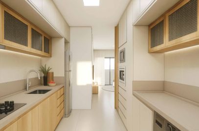✔️ Sala e cozinha em living (integrados) + lavanderia;
