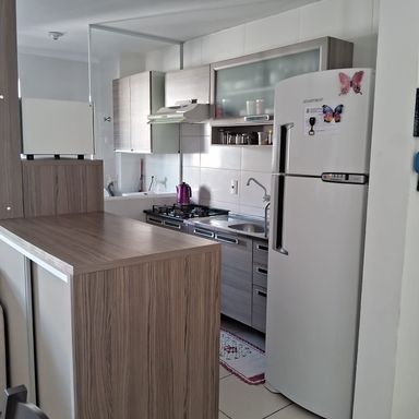 ✔️ Sala de estar/jantar e cozinha em living (integrados);
