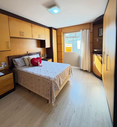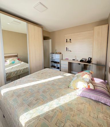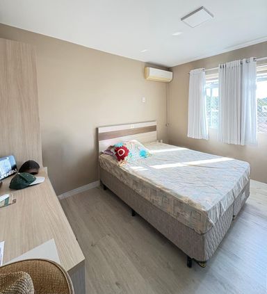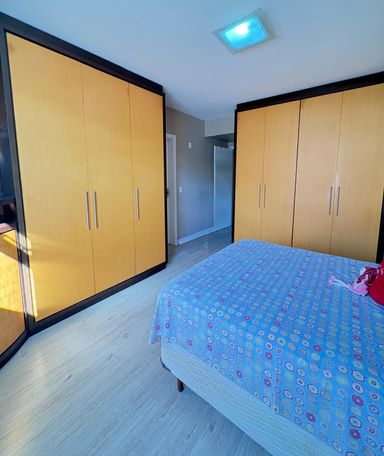- Armário e cama na suíte e nos 2 quartos