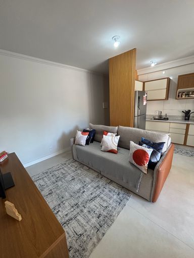 ✔️ Sala de estar/jantar e cozinha em living (integrados);