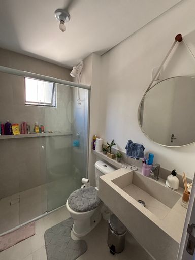 - Banheiro completo com box de vidro e pia em porcelanato;