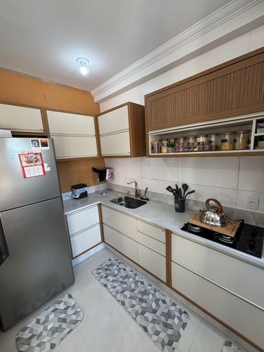 - Cozinha completa com bancada em porcelanato e móveis planejados;
