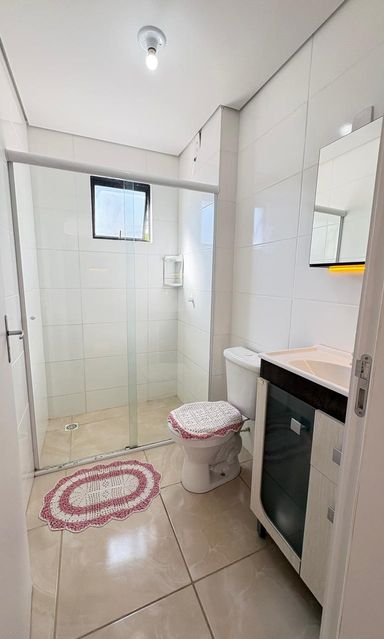 - Móvel do banheiro, box de vidro e vaso sanitário