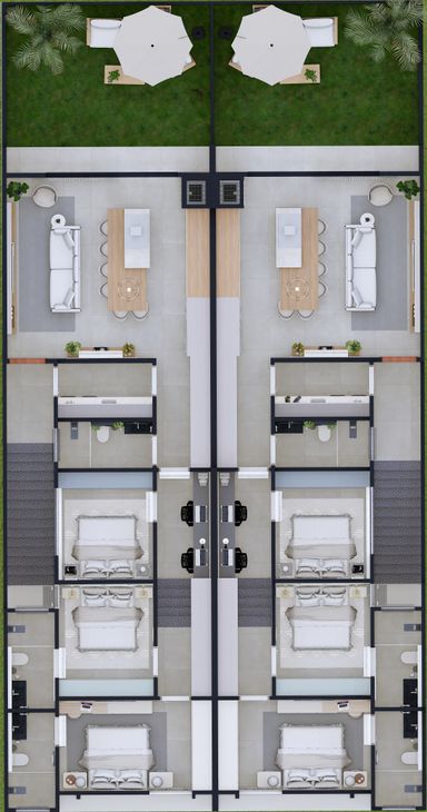 • Corredor interno com largura suficiente para atender a instalação de roupeiros, armários e home office