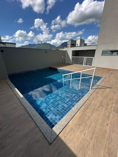 O condomínio conta com elevador, piscina e área de festas mobiliada, ideais para momentos de lazer e convivência.